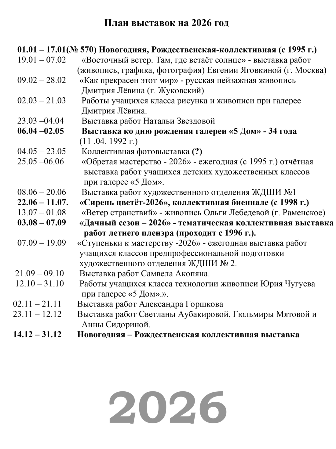 Календарь выставок
